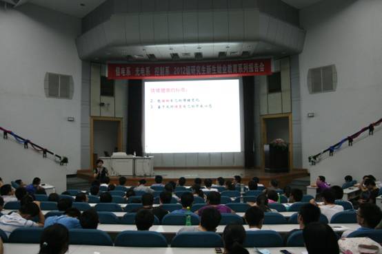 9月10日晚,信电系、光电系、控制系2012级研究生新生始业教育之心理健康教育和图书信息检索查询技术专题讲座在玉泉教七影视厅顺利举行。报告会邀请到国家二级心理咨询师龚惠香老师和校图书馆服务总监、副研究员钱佳平老师为大家带来精彩报告。三个学系2012级全体研究生新生及研究生辅导员参加了本次报告会。