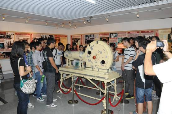 虽然只有短短的一个下午,但是这次出游的行程及内容安排却是十分丰富充实的。首先,同学们一行来到了位于浙江大学紫金港校区月牙楼内的校史馆进行参观。校史馆分为求是溯源、探求崛起、调整发展、争创一流等部分,史料丰富,内容翔实。同学们在讲解员的带领下领略了浙江大学由1897年建校起历经“文军西征”、院系调整、四校合并乃至今日打造世界一流大学曲折而辉煌的办学道路。特别值得一提的是校史馆中所展出的250万幅/秒的高速摄影机实物,它为我国拍下了第一张核爆炸的照片,同学们都感到十分的自豪,