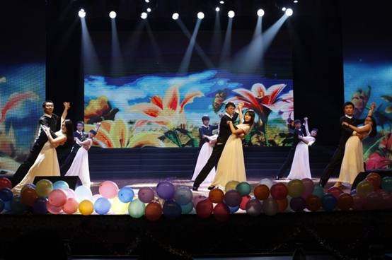 舒缓的音乐从舞台上流出,晚会在温馨宁静的气氛中拉开帷幕,开场的交谊舞表演,舞姿优美、旋律悠扬,为晚会营造了一种轻松自在的氛围。随后,张为鄂老师为晚会献上热情洋溢的新年致辞,新年晚会正式开始。