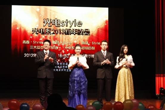 2012年12月24日晚上,光电系2013年“光电style”新年晚会在玉泉校区永谦小剧场隆重上演,信息学部主任刘旭、本科生院教务处处长刘向东、光电系主任童利民、党委书记张为鄂、系副主任白剑、王晓萍,党委副书记刘玉玲和各研究所的老师、德育导师、班主任应邀参加了晚会,整个小剧场座无虚席,全体光电学子和慕名而来的外院系同学翘首以待。