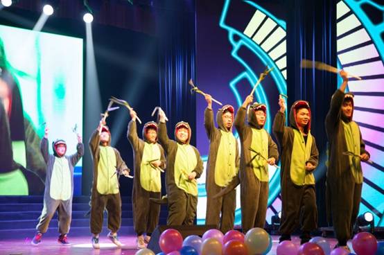 在“文明实验室”的颁奖仪式后,三等奖幸运观众在欢乐的气氛中产生,紧接着第二篇章拉开帷幕。0902、0904班的小品《越光宝盒》对大家耳熟能详的影视剧《月光宝盒》进行了创意十足的改编,幽默诙谐,他们的倾情演出让观众感受到了更加贴近大学生活的青春。1102班的荧光舞《光电魅影》在全场的黑暗中魅惑上演,一个个荧光的线条小人儿在台上有趣地跳舞,赢得台下阵阵掌声。接下来,由1104班带来舞台剧《印象成长》,两个相声演员风趣的对话,一串串珍贵的记忆随之流出,带我们浮想联翩。随后0902班、显示所、光电子所联袂为我们带来乐队连奏《末日摇滚》,声起忧思,情牵六弦,鼓点不断,音乐环绕在每个人的耳边。最后,我们期待已久的光电STYLE闪亮登场,糖果色的鸟叔,闪亮的sexlady,流行的骑马舞,在绚丽的舞台上燃起青春的火焰,点燃了全场激情。