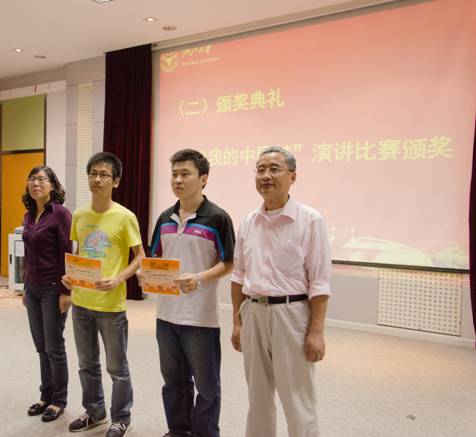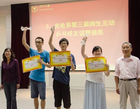 活动开始,光电系党委书记张为鄂为第五届“光电节”闭幕式致辞,他指出“光电节”已经成为浙大校园里的品牌特色活动,五年来光电节不断推陈出新,向全校同学宣传光电知识,增加全校师生对光电学科和光电学子的了解,并对为第五届“光电节”各项活动举办的广大学生干部表达了衷心的感谢。接着,光电团学联主席盛亚茗对本届光电节一系列活动做了声情并茂的总结,并展示了本届光电节在校园内取得的良好反响。闭幕式最后,张为鄂老师和刘玉玲老师为“我的中国梦”演讲比赛、“中国梦·光电情”主题征文比赛、以及光电系第三届师生互动乒乓球友谊赛的获奖同学颁奖,向他们表示了祝贺。
