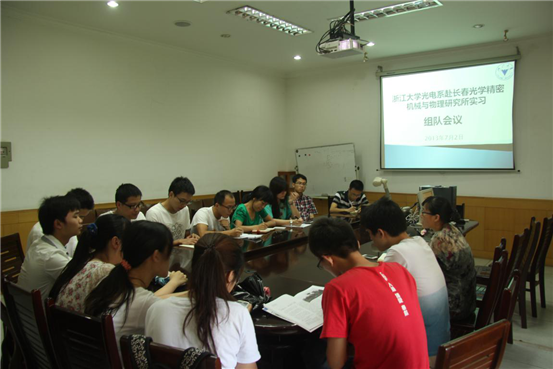 参与本次组队会议的主要有:刘玉玲老师、冯萍老师以及参加本次活动的十八位光电系本科和研究生同学。刘玉玲首先向同学们说明了组织本次活动的目的,希望大家能够珍惜此次宝贵的学习实践机会,并希望同学们在去参观之前,撰写自己的实习计划,明确自己想要得到的信息,以便于参观实习时能够有的放矢;同时在活动结束之后对自己的实习参观进行总结。她还希望大家能够在长春光机所参观实习时能够联系到长光的我系系友或者校友,对他们进行采访座谈,将他们的成功经验给广大光电系师生分享,并为有志于进入长春光机所的同学们提供相关信息。刘玉玲老师还重点强调了安全问题,包括建立每日安全报告制度,团队行动,对于紧急情况的处理等等,在安全问题上一定不能够有所放松,做好充分准备,确保本次参观实践活动安全、有效完成。冯萍老师对参加实习的同学对本次实习活动的开展提出了具体的要求及明确的分工,希望大家能够安全、圆满的完成本次暑期实践活动。最后由队长沈亦�提出了一些其他注意事项,并和大家就一些不清楚的地方进行了讨论,以确定本次活动前期的一些工作能够顺利开展。
