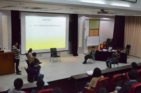 随着第一个环节的结束,许多同学凭借着过人的知识积累,已经收获颇丰。在第二个团队作答的环节中,各个小组发挥集体优势,集思广益,探讨争辩,将比赛推向了高潮。而活动组织者准备的脑筋急转弯益智题目让答对的同学拍手叫好,令回答错误的同学恍然大悟、悔恨不已,足见组织者对于比赛策划的用心。两轮答题过去了,各组的分数已经分出先后,同学们纷纷摩拳擦掌准备在第三个环节一展身手,最后一搏。