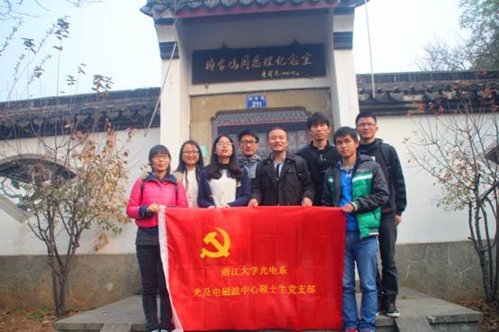 2013年12月7日,光及电磁波中心硕士生联合博士生党支部的党员同志们在蒙蒙的雾霭中,组织了一次前往梅家坞周总理纪念馆参观学习的党支部活动,号召大家学习周恩来总理以身作则,深入基层,关心人民群众生活发展的精神。