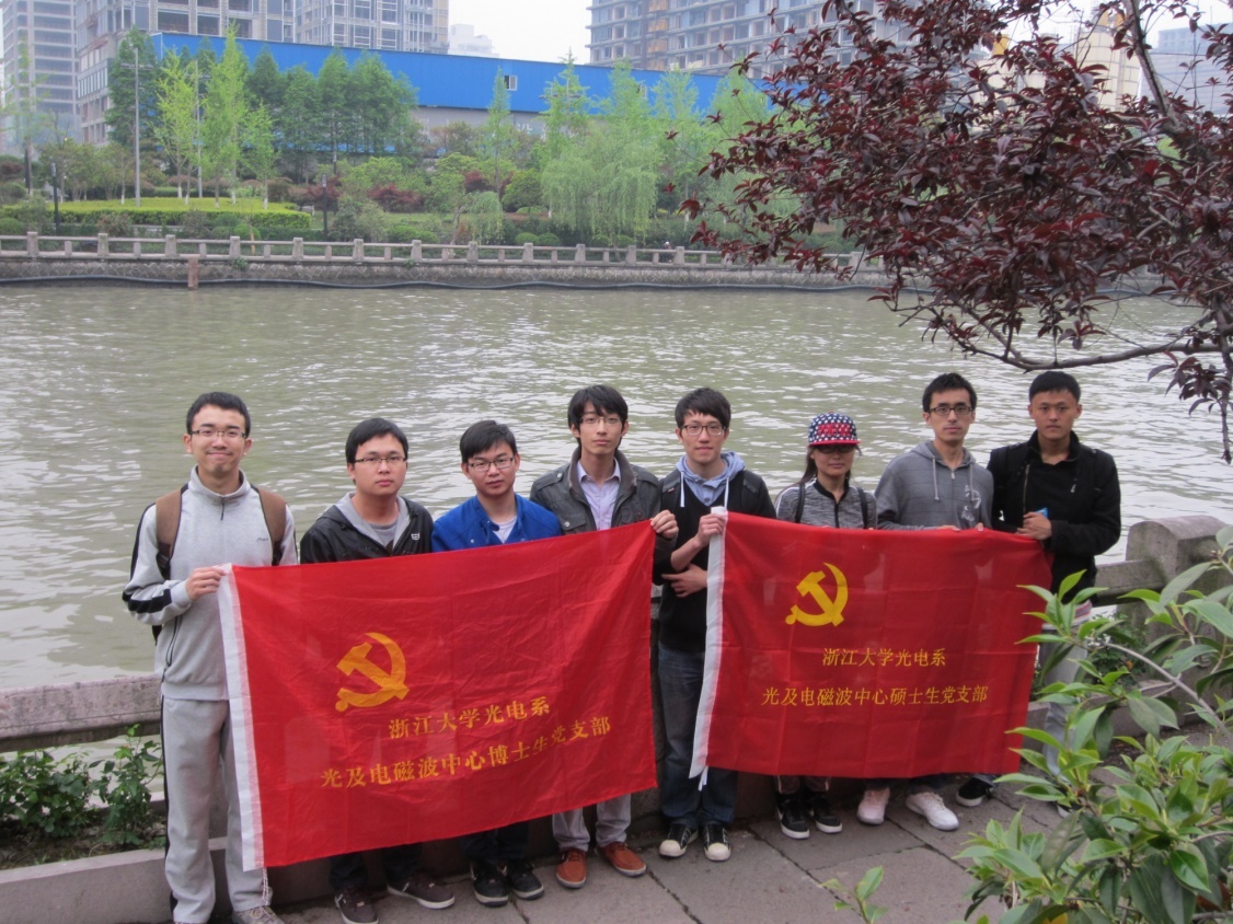 2014年4月20日下午,紫金港光及电磁波研究中心硕士生和博士生党支部来到西湖文化广场附近开展了“大运河周边及市区生态环境实地调研”活动,旨在增强大家的环境保护意识,提升党员同志的责任感。