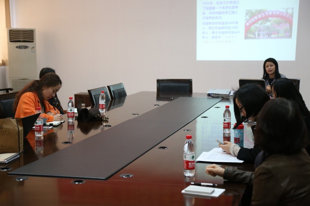 会上,费兰兰老师首先代表光电系对远道而来的客人们表示欢迎。在双方相互介绍之后,费兰兰老师向来宾介绍了我系的各方面的状况,对我系历史沿革、专业设置、师资力量、研究方向、人才培养结构、国家科研基地、合作实验室及教学基地、国际化人才培养、国际人员交流等方面做了详细介绍。让来宾们大致了解了光电系的基本情况。