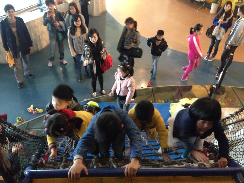 我们的服务区在科技馆的三层,这里有运动场、宝船、电学实验区以及智力游戏区等几个主要的模块,这里也是小游客们最喜欢、最扎堆的地方,所以相比其他岗位,在热闹的同时也会有很大的工作量。