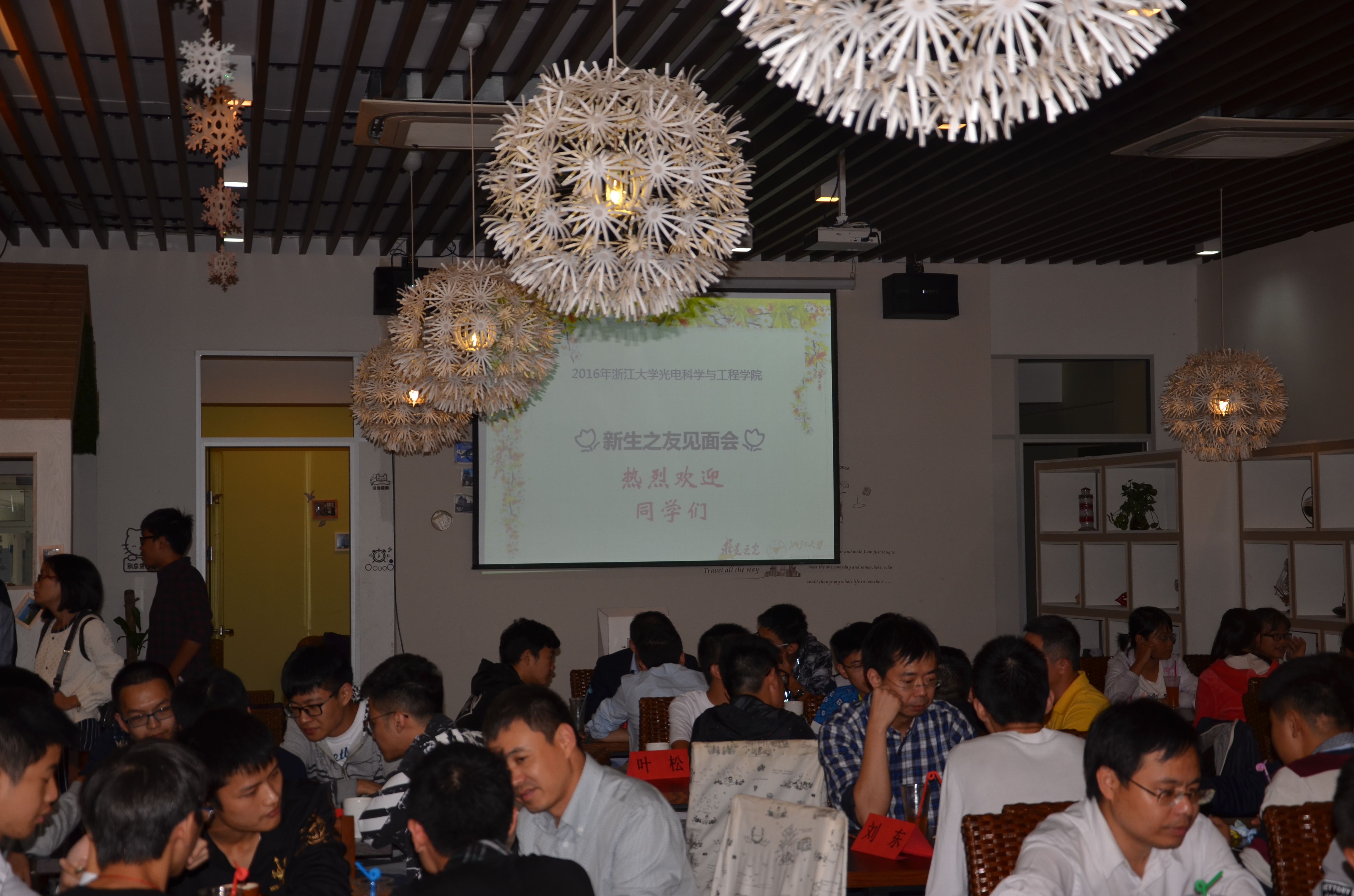 2016年10月14日下午,浙江大学光电学院2016级新生之友见面会在紫金港校区白沙综合楼“浙里吧”举行, 见面会由本科生辅导员吕成祯老师主持。光电学院党委书记叶松老师、副院长白剑老师、党委副书记刘玉玲老 师等20多位新生之友与其结对的新生一起参加了本次见面会。