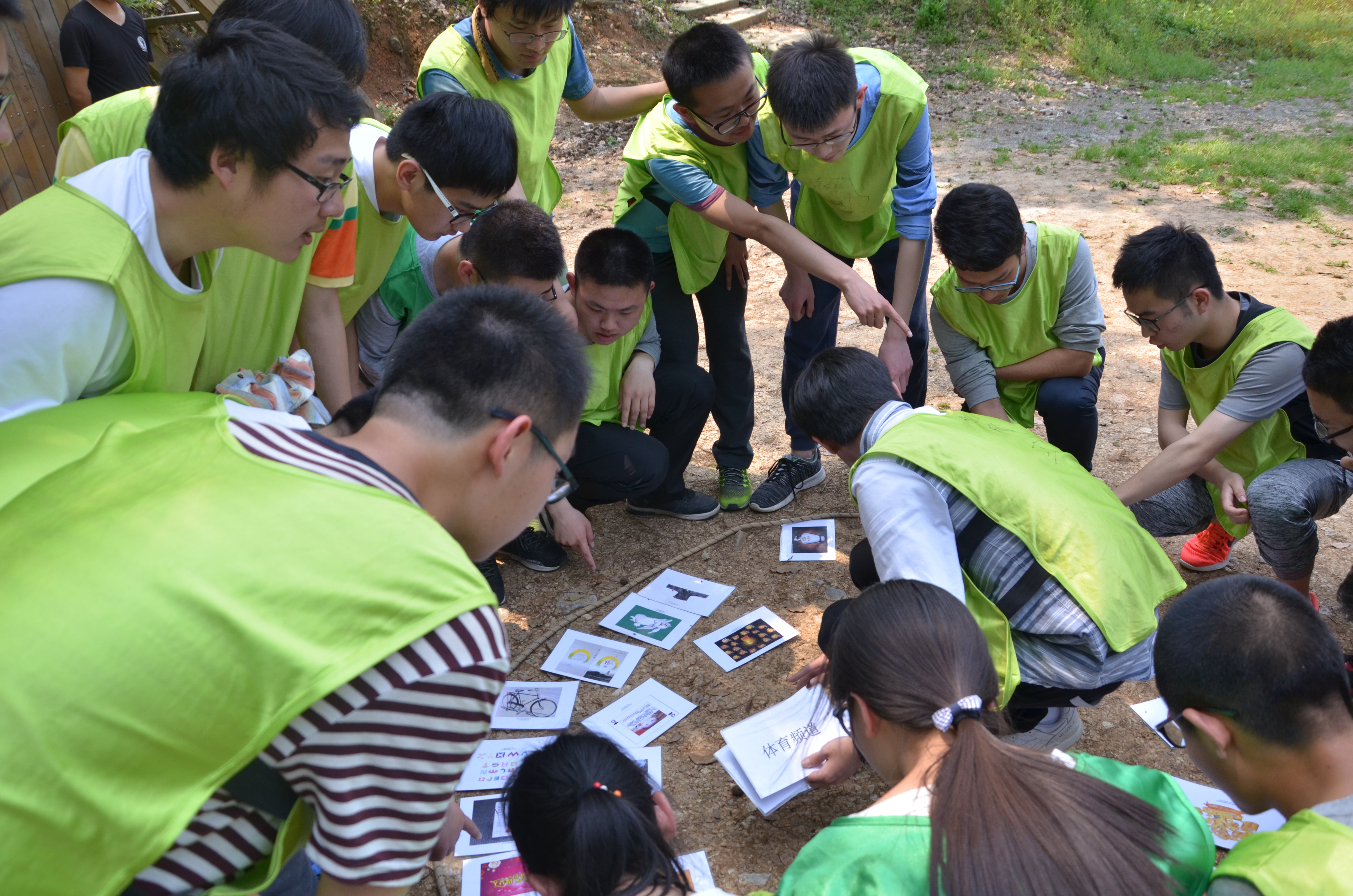 下午的活动在“急速60秒”活动中拉开了序幕。四个组分别在起点出发,跑到指定地点的圈内,由指定队员收集卡片,全组队员一同识别,通过卡片上的图案判别卡片所代表的数字,按顺序交给教官,每组每轮限时一分钟,共三轮。这个活动有效的训练了压力下的团队合作,最终团队间相互鼓励,体验了达到胜利的巅峰喜悦与团队荣誉感。