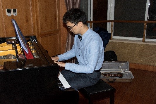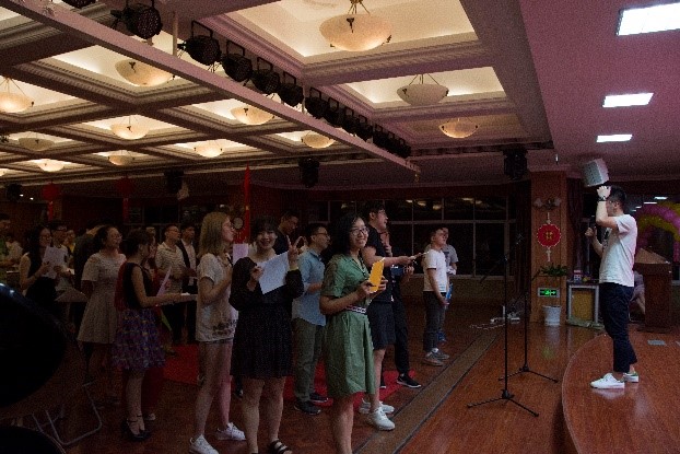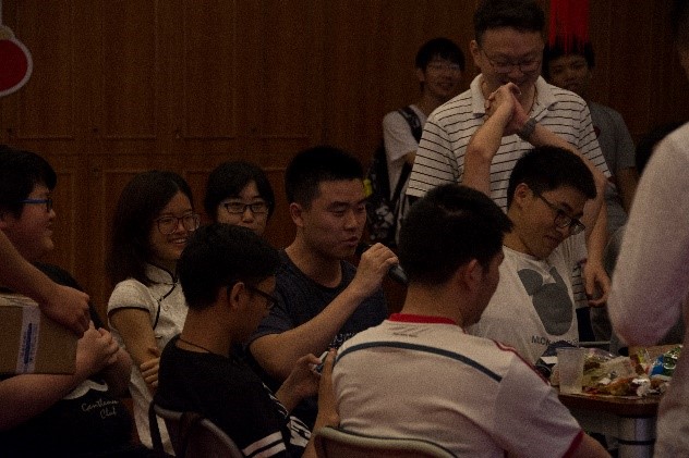 辅导员吕成祯老师为在场的老师同学带来了一曲“父亲的草原母亲的河”,饱含深情的演唱感染了整个会场。接着,1302班带来了有趣的画图接龙游戏,观众自由报名组队分别在白纸上画图猜词,会场笑声不断。刺激的游戏过后是舒缓的歌声,毕业生黄玉佳与胡博滔为我们带来了三首经典歌曲,融洽的和声使得在场师生不由地随着节奏一起吟唱起来。随后,毕业班张璋与诸卓宁为我们带来的钢琴与小提琴合作的卡农更是将晚会推向了另一个高潮。最后,在1304班组织的考验同学们对学校的了解、知识的积累以及随机应变能力的“趣味答题“游戏中,晚会落下了帷幕。在”吾梦逐光”晚会签名板前,师生们合影留念,将这段美好回忆永远留存了下来。