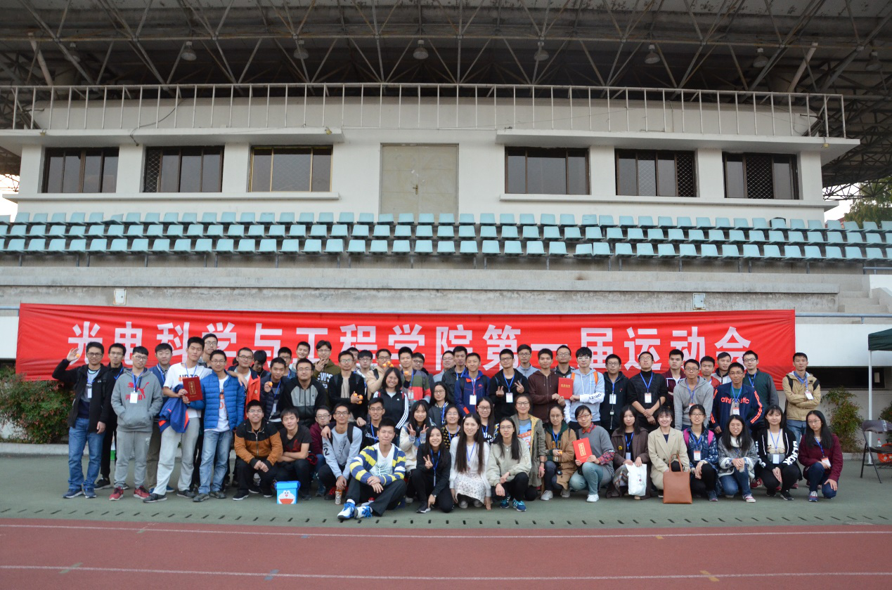 本次运动会共有100米短跑、女子800米、男子1500米、跳高、跳远等单人项目和4×100米接力等一系列项目。在光电学院翁亮老师,公共体育与艺术部卢芬老师以及光电学院辅导员张曼华老师的带领下,经过光电学院研究生会和本科生学生会的精心策划,此次运动会中,同学们的参与热情空前高涨,超过100位同学参与了此次比赛,志愿者及工作人员共计六十余人。