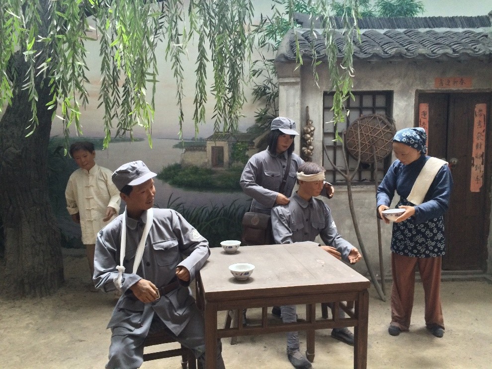 馆内大厅还用蜡像生动地描述了当时军民相亲、共同抗战的情景。在几处休息的地方播放着电影《沙家浜》的片段,吸引了不少同志观看。置身其中,仿佛那个让人热血沸腾、军民齐心抗敌的场面就在眼前。