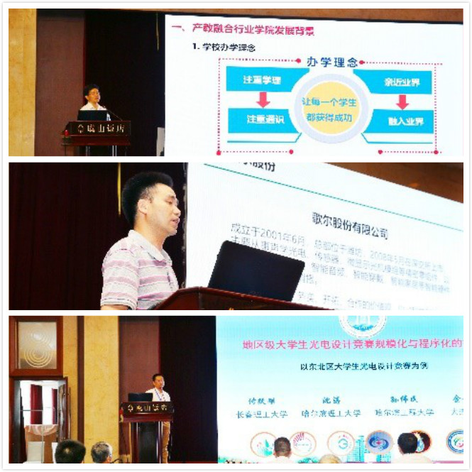 在29号下午的校企合作和竞赛组织经验分享中,常熟理工学院党委常委、副校长张根华从常熟理工学院的办学理念出发,详细介绍了校企合作情况以及新工科视野下行业学院建设和发展情况;歌尔集团公司总监赵东峰结合歌尔的战略目标,详细介绍了歌尔产学研合作情况;长春理工大学付跃刚教授结合自身长期组织大学生光电季赛的经历,对地区级大学生光电设计竞赛规模化与程序化进行了探讨,并提出了个人思考。最后,中国光学学会光学教育专业委员会第三次全国会员代表大会在热烈的掌声中闭幕。