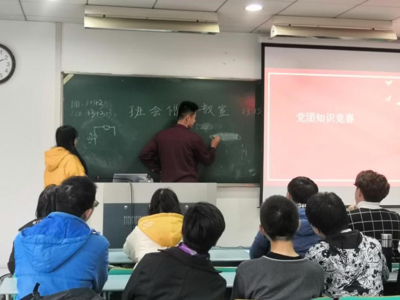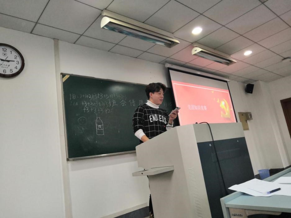 党团知识介绍完后,接下来是一些趣味竞赛,首先是党团知识竞赛,共有20道与党团知识有关的小题,问题涵盖了共青团起源,以及团歌团徽的一些细节问题,算是对上一环节介绍的党团知识的巩固。这一环节同学们都在积极参与,并且正确率很高,可见党团知识的介绍还是非常有效的,同学们都记住了基本的党团知识。