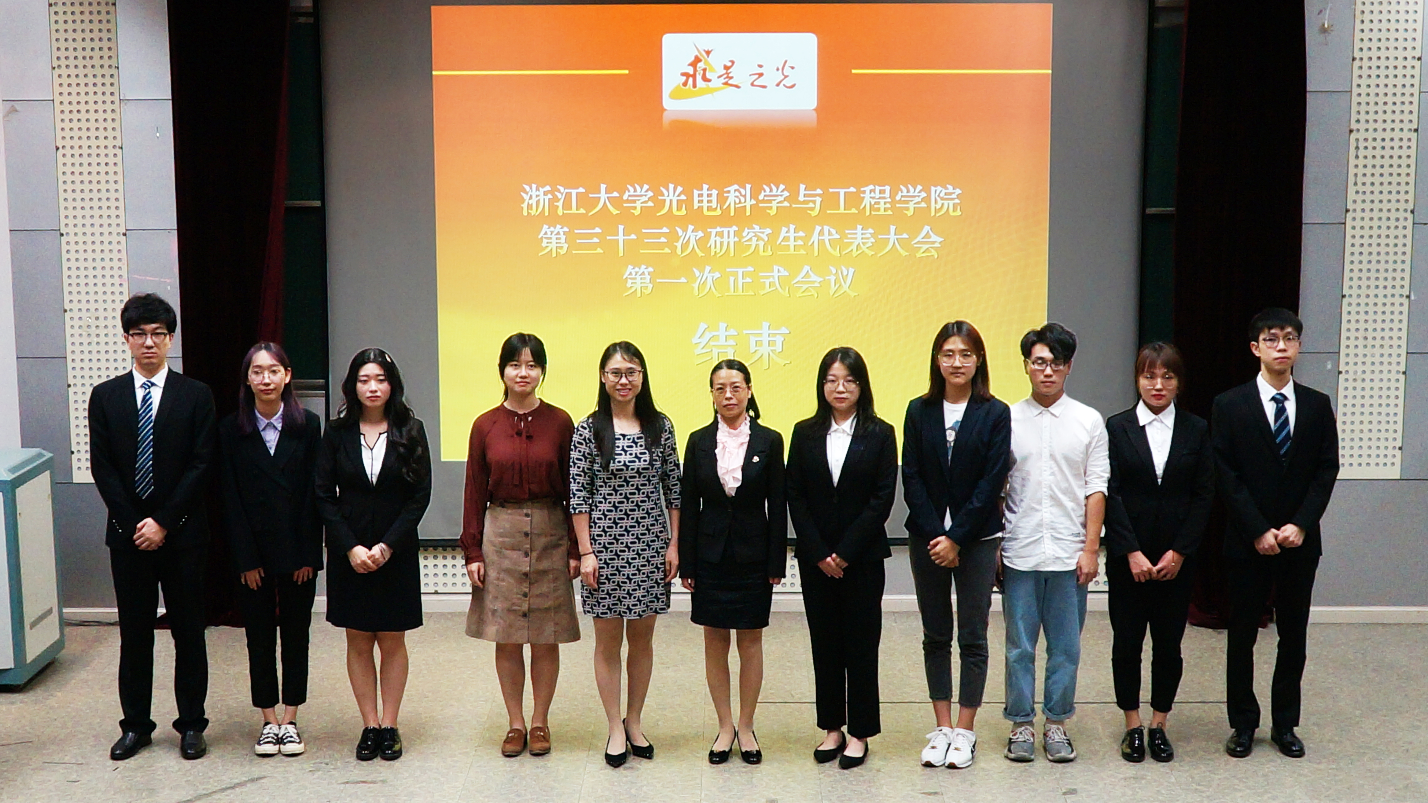 至此,浙江大学光电科学与工程学院第三十三次研究生代表大会宣告结束。光电科学与工程学院第三十二届研究生会在学院党委的领导、团委的指导下,在全体研究生的大力支持下,在过去一年的时间里,本着全心全意为同学们服务的宗旨,开展了学院工作,较好地服务于广大研究生同学,取得一定成绩。使命已经完成,希望新一届研会可以继往开来,与时俱进,开拓创新,谱写光电学院研究生工作的新篇章。