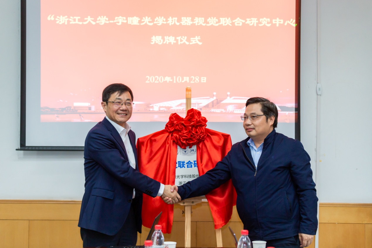 2020年10月28日下午,“浙江大学-宇瞳光学机器视觉联合研究中心”揭牌仪式在浙江大学玉泉校区教三326举行。仪式由国家光学仪器工程技术研究中心副主任汪凯巍主持。