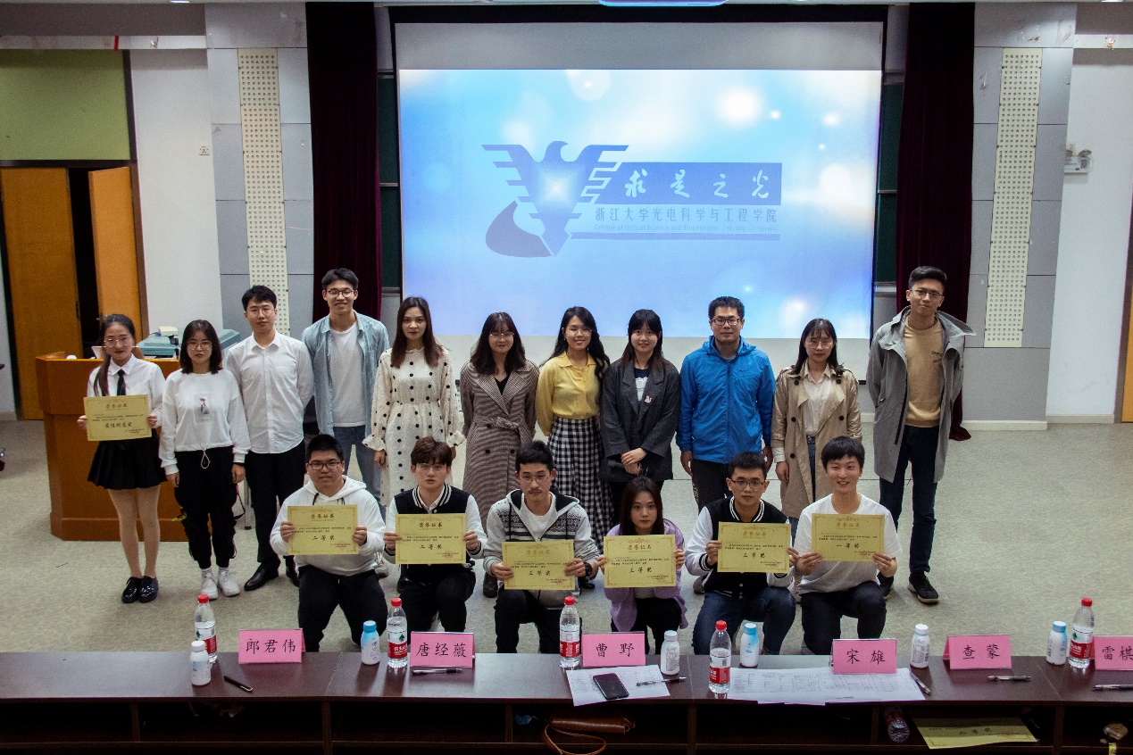 之后,曹野老师上台发言,曹老师对各所的节目一一点评,表达对同学们的关心和鼓励,并送给同学们衷心的祝愿。紧张的算分环节后,由查蒙老师宣布获奖名单并颁发奖项,光学惯性技术工程中心获得了最佳创意奖,激光生物医学研究所获得了一等奖,光电工程研究所和微纳光子学研究所获得了二等奖,光学工程研究所、光学成像与检测技术和光及电磁波研究中心获得了三等奖,至此,光电学院研究生合唱比赛圆满结束。