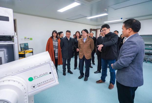 校领导及海宁市领导一行在先进光子学国际研究中心主任戴道锌教授的引导和解说下,详细了解了研究中心的组织架构、建设进展以及未来规划发展方向。在研究中心副主任马云贵、钱骏教授的陪同下,一行人参观了激光遥感实验室,听取了刘崇教授关于激光遥感团队最新研究成果的讲解,并现场观看了激光雷达测试的实验数据。接着,在斯科教授负责的生物光子学实验室观看了运用高性能计算工作站进行生物成像结果分析的演示。随后,在狄大卫教授的讲解下,一行人详细了解了柔性光电子实验室的最新研究方向和未来拟开展的研究内容。最后,在集成光学实验室及亚波长光学实验室,一行人现场观摩了集成光学芯片的测试分析实验,现场交流氛围活跃融洽。参观结束,市校合作会议领导对研究中心的工作给予了高度肯定,并对未来研究中心的发展寄予厚望。