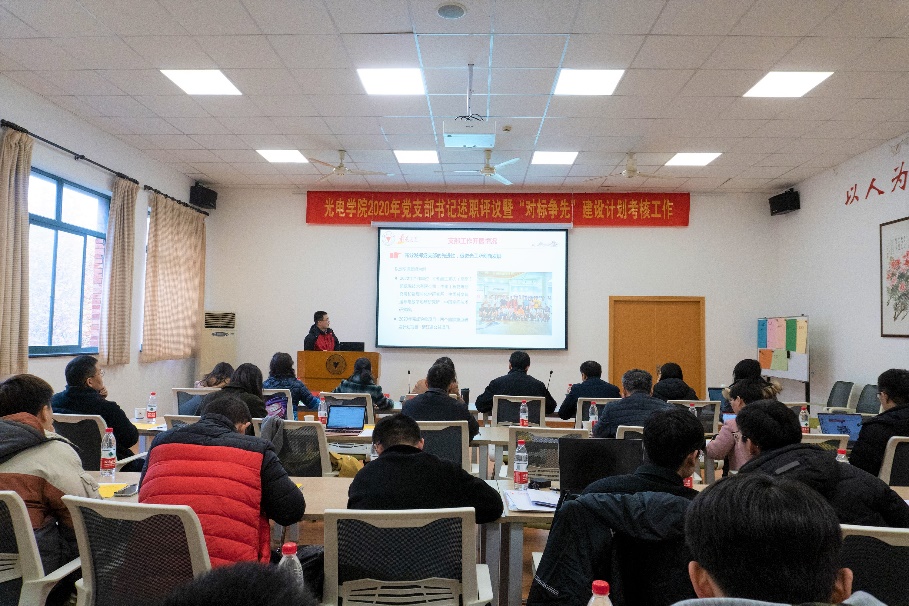 2020年12月8日下午,光电学院2020年党支部书记述职评议暨“对标争先”建设计划考核工作在玉泉校区教三440举行,9个教工党支部和12个学生党支部书记进行年终述职。党委书记刘玉玲,院长刘向东,党委副书记郑丹文,副院长戴道锌,党委委员姚达,团委副书记张曼华,专职组织员刘文静出席并担任专业评委。