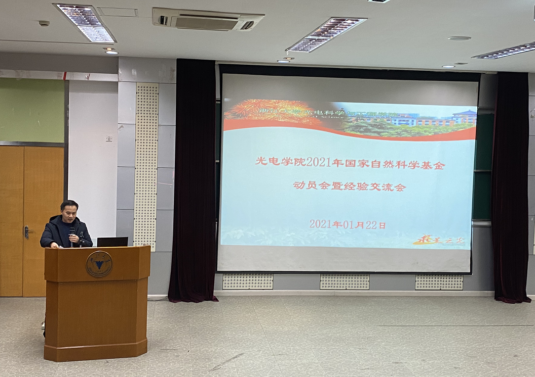 1月22日下午,光电学院青年教师沙龙——青咖时光第八期暨2021年度国家自然科学基金申报动员及经验交流会在玉泉校区教三301会议室顺利举行。学院骨干教师及博士后50余人参加会议,会议由副院长戴道锌主持。