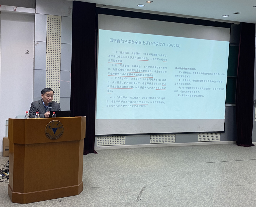 随后院长助理刘东重点解读了2021年国家基金申报的改革要点与工作思路,从经费预算、限项规定、科研诚信及形式审查等方面梳理了各类项目申报的要求,并介绍了重大重点及人才类项目的申报注意事项。