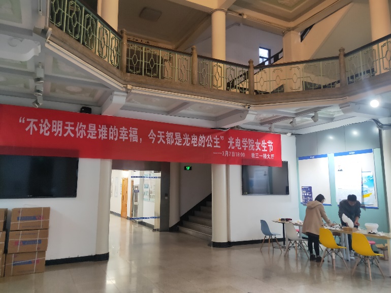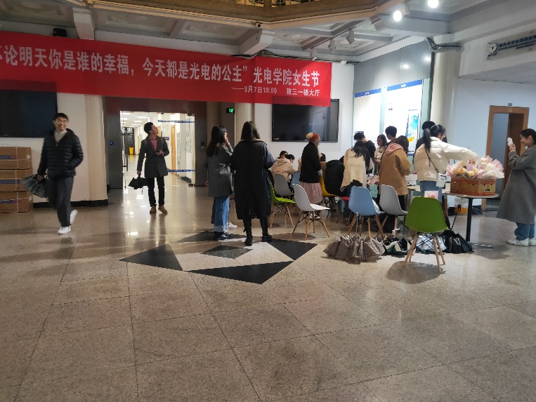 3月7日晚18:00,在教三一楼大厅,由光电学院团委、学生会与研究生会联合主办的“女生节”活动如约而至,大家精心准备,等待着约定相会的女神们一一前来,为最美的她们带来一个属于自己的节日。