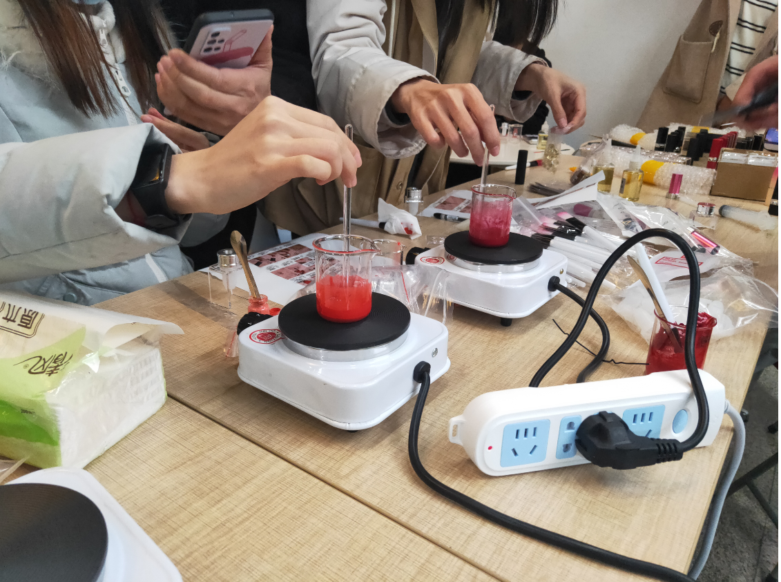 女生们现场DIY口红,亲手为自己打造专属口红。