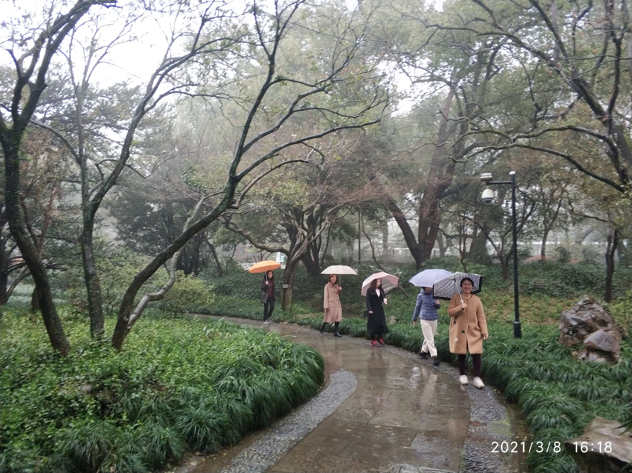 尽管天空中飘着蒙蒙细雨,偶尔雨势还有些大,但大家参与活动的热情不减。光电女同胞们在节日活动中,或单人独往、或两人同行、或三五成群,脸上洋溢着笑容,既欣赏了雨中别有一番意境的植物园景色,又休憩舒缓了身心,将继续保持严谨、细致、认真的工作风貌,在各自的教学、科研、管理、服务支撑等岗位上,投入到学院推进“双一流“建设的各项工作中。