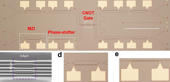 为了构建通用量子计算机,量子受控非门(CNOT gate)是必不可少的核心组成元件。其功能是根据控制比特的状态来改变目标比特的响应,再结合单比特量子门操作,有望扩展为超大规模从而实现任意功能量子信息处理系统。近年来,多个研究团队先后在不同平台演示了CNOT门。然而,现有CNOT门尺寸过大,难以满足未来复杂量子信息处理系统的发展需求。因此,如何实现超小尺寸CNOT门成为在全球范围内广受关注的核心问题。