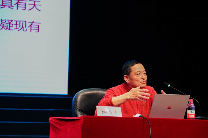 会议伊始,许为民教授首先带领大家学习了中国共产党建党百年辉煌历史与浙江大学建校124年的发展历程,随后围绕中国现代高等教育发轫、浙江大学迎来世纪跨越、中国高校彰显文化自信三个方面进行了深入浅出的讲解与诠释。许为民教授详细介绍了十九世纪末世界科技革命背景下中国最早四所现代大学的诞生,回顾了二十世纪上半叶中国高校艰难蹉跎的发展历程。报告以浙江大学“四校合并”历史为示例,系统地介绍了新浙江大学成立的背景,指出创办学科齐全的综合性大学是中国高等教育体制改革的重大突破,不仅极大地促进了学校自身的发展,而且对全国高等教育改革与发展都产生了重大的影响。许为民教授阐述了中国传统文化与教育本质的关系,并直面“李约瑟难题”和“钱学森之问”,剖析了“立德树人”的本质,强调要重视科学与人文的交融,要彰显中国高教的文化自信。