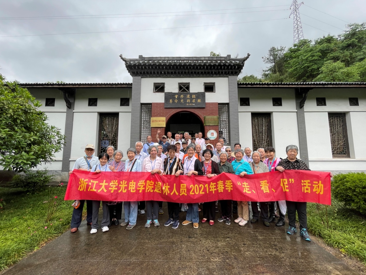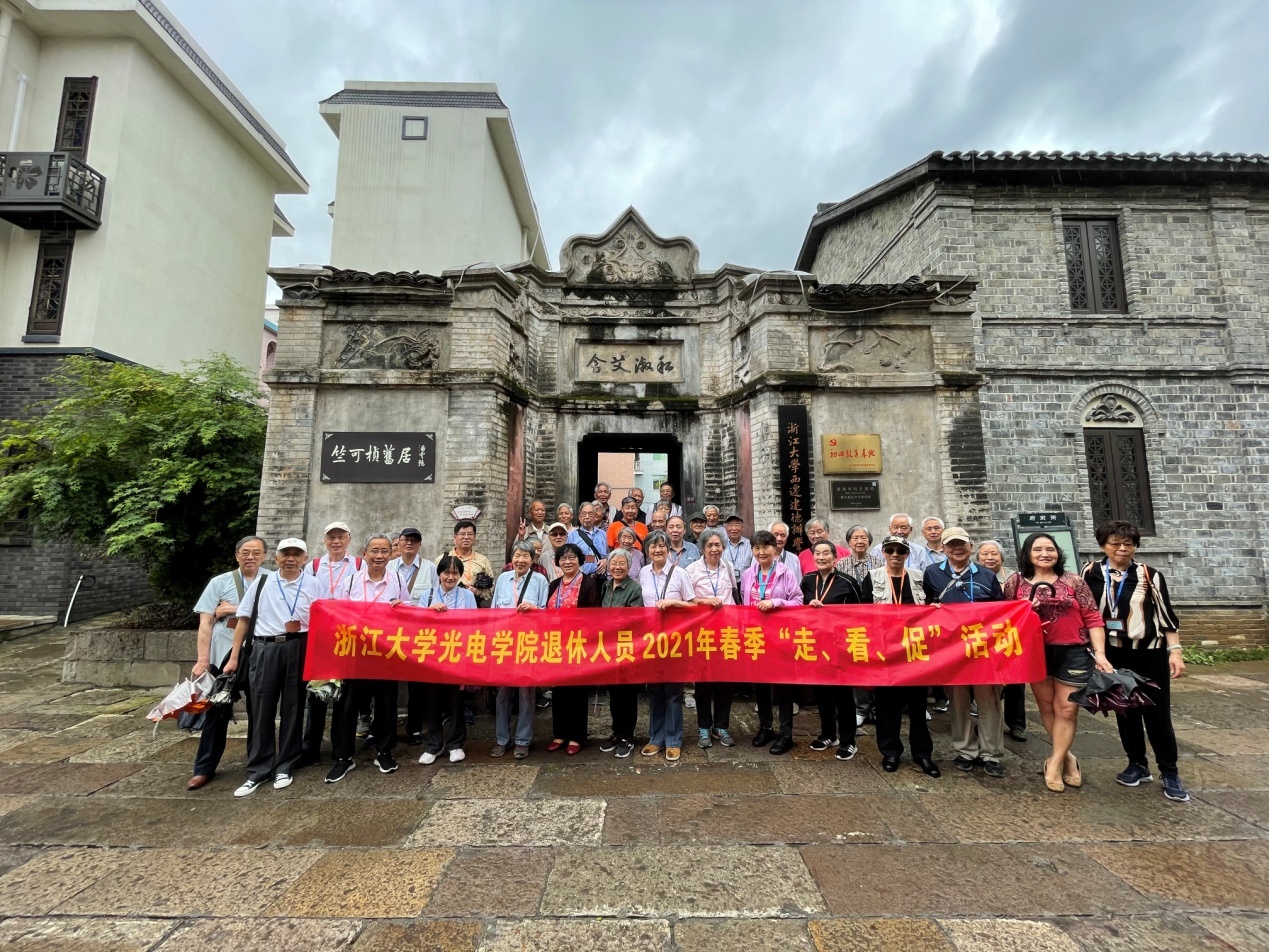 暮春五月,暖风拂面。光电学院积极组织离退休教职工“走基层、看变化、促发展”活动,带领50余位老同志在5月11日前往建德双童烈士纪念馆与梅城古镇。大家共同学习了中共建德革命历史、缅怀童祖恺和童润蕉烈士,走进悠久古镇、参观了浙大西迁期间竺可桢校长故居。