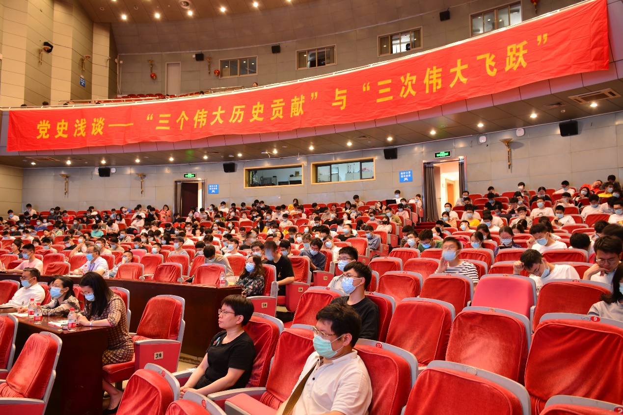2021年5月14日下午两点半,由光电学院、控制学院分党校联合组织的党史学习教育专题宣讲暨先锋学子报告会在玉泉校区永谦剧场举办,本次活动邀请到浙江大学党史学习教育宣讲团成员、浙江大学马克思主义学院中国近现代史纲要教研室主任赵晖老师作专题报告,报告题目为《党史浅谈——“三次伟大历史贡献”与“三次伟大飞跃”》。会议由光电学院党委书记刘玉玲主持。