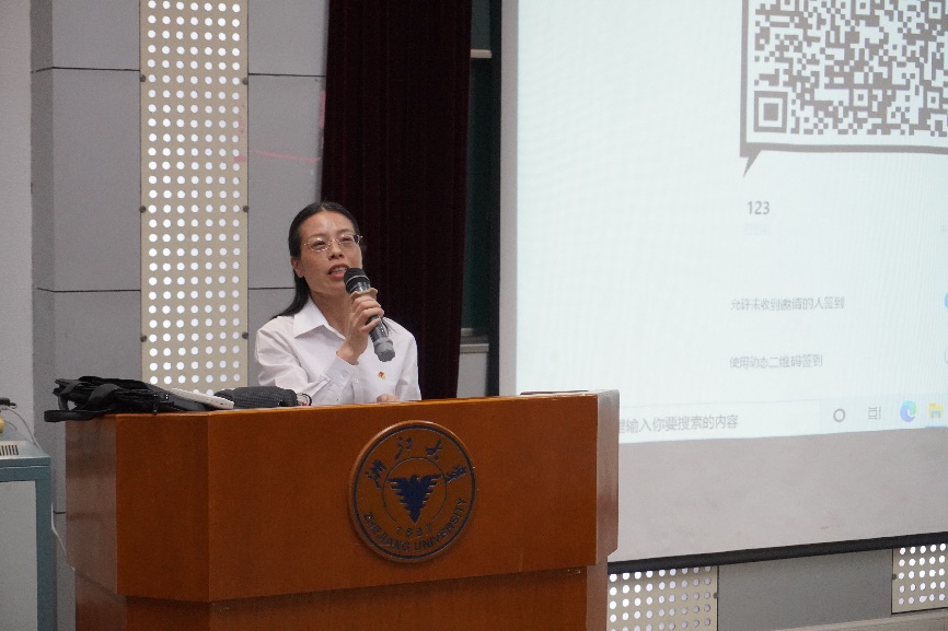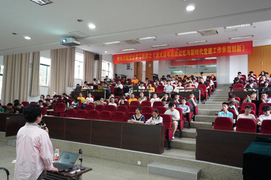 主题报告会由光电学院党委副书记郑丹文主持。郑书记提出要把学习贯彻党的创新理论作为思想武装的重中之重,并同学习党史、新中国史、改革开放史、社会主义发展史结合起来。同时还指出,学习好校史校情,探寻百年浙大之积淀,是培育具有家国情怀、德才兼备的求是光电人才的重要环节。
