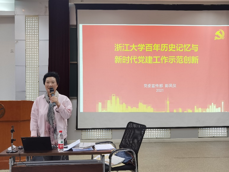 彭老师在最后指出,新时代下党建工作示范高校的理论探索和创新实践的挑战和任务在于,要在多元文化交流、交锋的考验下立德树人;胸怀“两个大局”的党建工作动能激发和战略迭代;发扬红色传统,传承红色基因;发扬伟大精神,讴歌新时代辰星璀璨的浙大优秀共产党人。