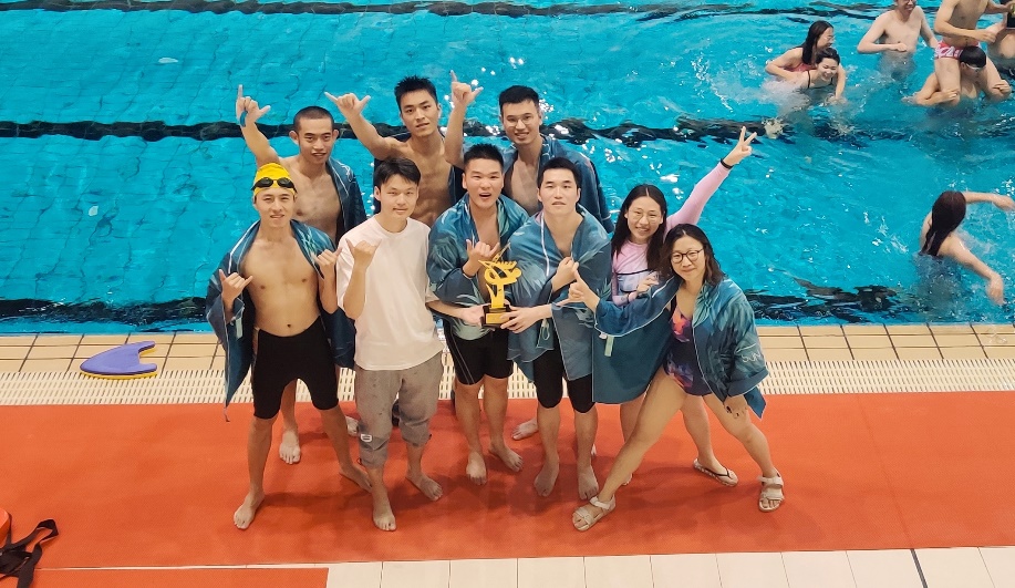 游泳队由不同年级的本科生与研究生组成,大家在赛前自发组织训练,再大的风雨也不能阻挡大家的热情。共同努力下,队员们越来越默契,这支队伍变得越来越具有竞争力,大家对比赛充满了信心。