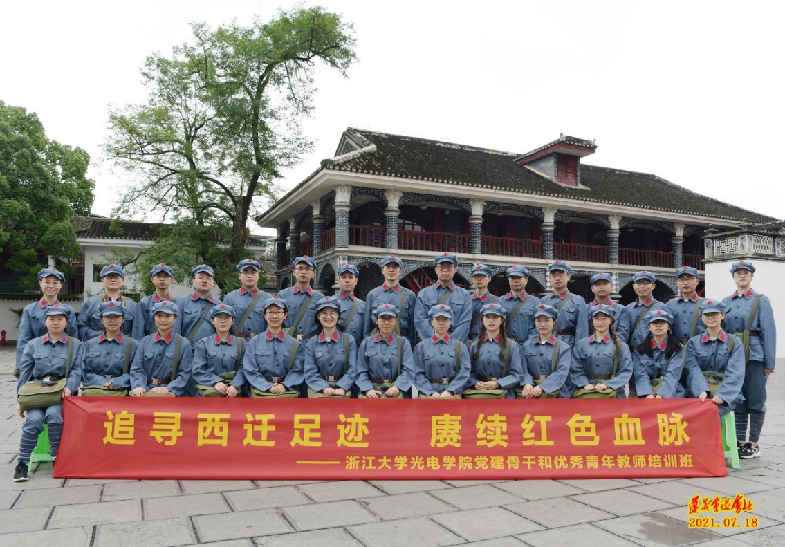 2021年7月17日一早,浙江大学光电学院的党员骨干和优秀青年教师代表背上行囊,从祖国的东部平原到崇山峻岭的西部高原,赴贵州遵义和湄潭开展为期五天的“浙江大学光电学院党建骨干和优秀青年教师培训班”培训学习活动。尽管路途遥远,同志们对此次培训学习活动满怀期待, 9个小时的车程在大家的欢声笑语中悄然流逝。