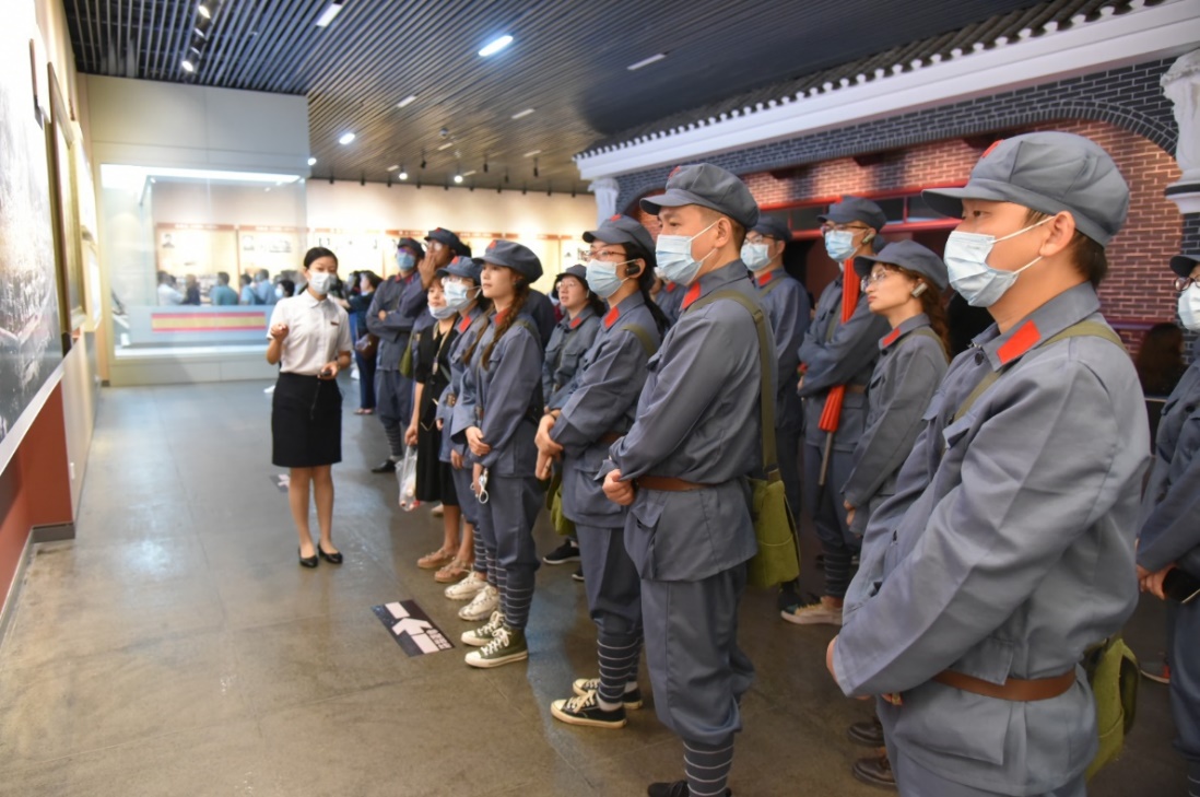 7月18日早晨,全体学员统一身着红军服、头戴红军帽、肩挎印有“为人民服务”字样的红军包,气宇轩昂、整装待发,前往遵义会议纪念馆和陈列馆进行学习。会址门楼上,毛泽东亲笔题写的“遵义会议会址”6个大字在阳光照耀下熠熠生辉,走进纪念馆大门,一座青砖的二层小楼静静伫立, 86年前召开的成为中国共产党的历史上一个生死攸关的转折点的遵义会议就是在这里召开的。