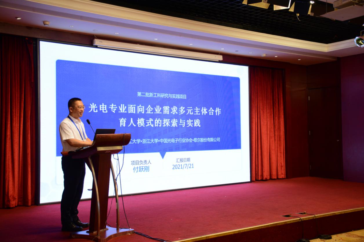应光电教指分委邀请,会议共安排5场大会报告。浙江大学光电科学与工程学院副院长郑臻荣、长春理工大学副校长付跃刚分别就实施教育部第二批新工科研究与实践项目“光电专业未来战略必争领域紧缺人才培养的探索与实践”、“光电专业面向企业需求多元主体合作育人模式探索与实践”作了汇报,分别介绍了两个项目的立项背景、研究内容、实施方案和进展情况。“光电专业未来战略必争领域紧缺人才培养的探索与实践”项目旨在探索面向国家重大需求、解决光电复杂问题的爱国报国型创新人才培养新模式;“光电专业面向企业需求多元主体合作育人模式探索与实践”项目聚焦地方高校光电专业面向产业变革转型需求,探讨通过创新合作育人新模式,建立多主体合作育人机制,推动光电专业开放式培养,解决专业人才培养中适配性弱、效率不高等问题。