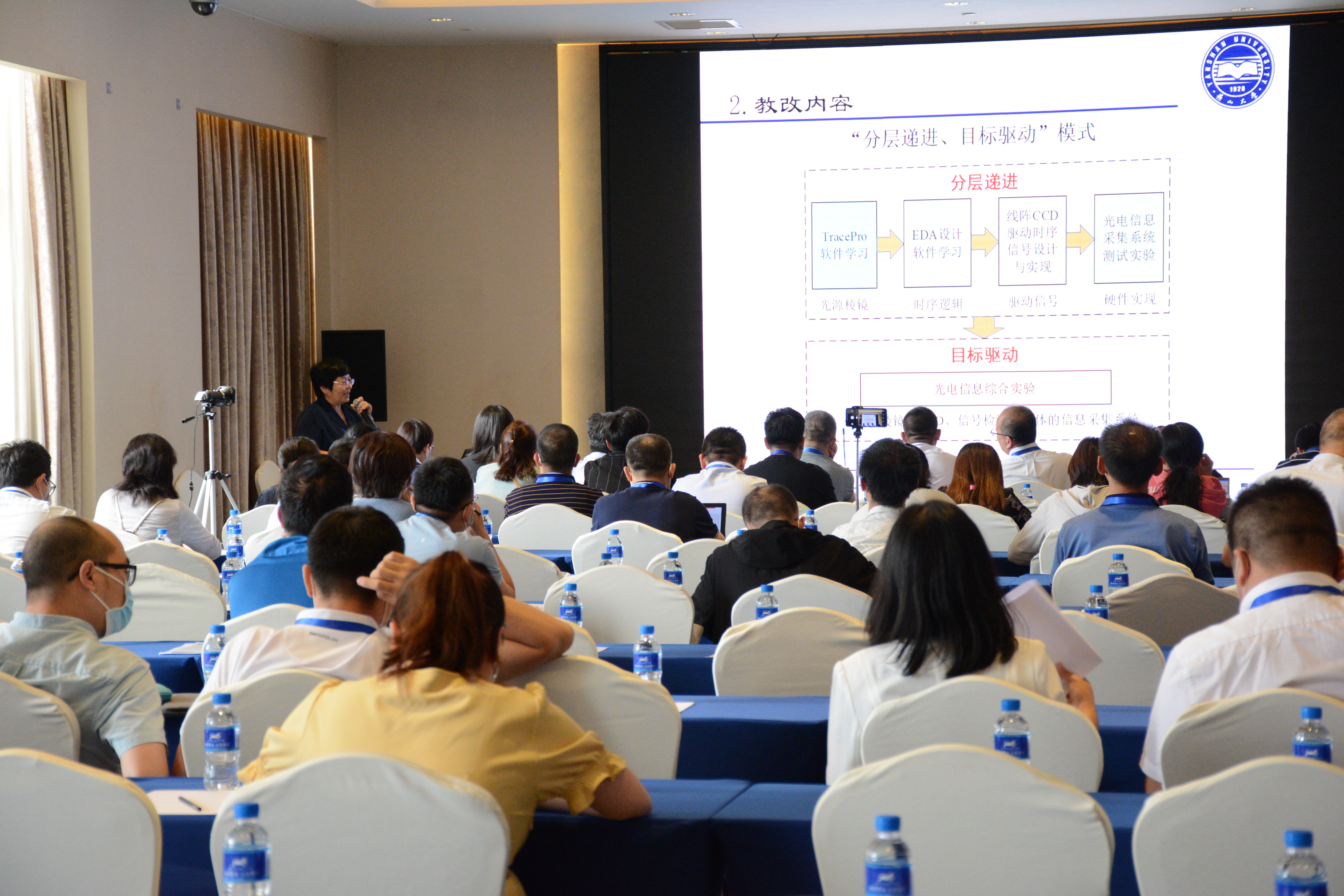 光电教指分委联络员代表武汉光驰李小红、大恒光电李秀芳分别作了“基于实物的虚实交融虚拟仿真实验在光电教学中的应用探索”及“以产学合作推动光电教学改革发展”的专题报告。