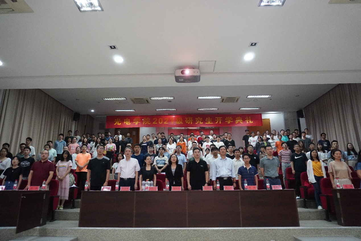 首先,全体起立,奏唱国歌。在这庄严肃穆的国歌声中,每位光电师生将爱国之情铭刻于心中。国歌礼毕,光电学院党委书记刘玉玲致欢迎辞,她简要讲述了六十九年来光电人艰苦奋斗的历程和现如今的辉煌成就。刘书记表示,当下正处于百年未有之大变局,她勉励同学们要志存高远、脚踏实地、勇于创新、砥砺德行,秉持“求是创新”校训,增强做中国人的志气、骨气、底气,为中华民族的伟大复兴努力奋斗。