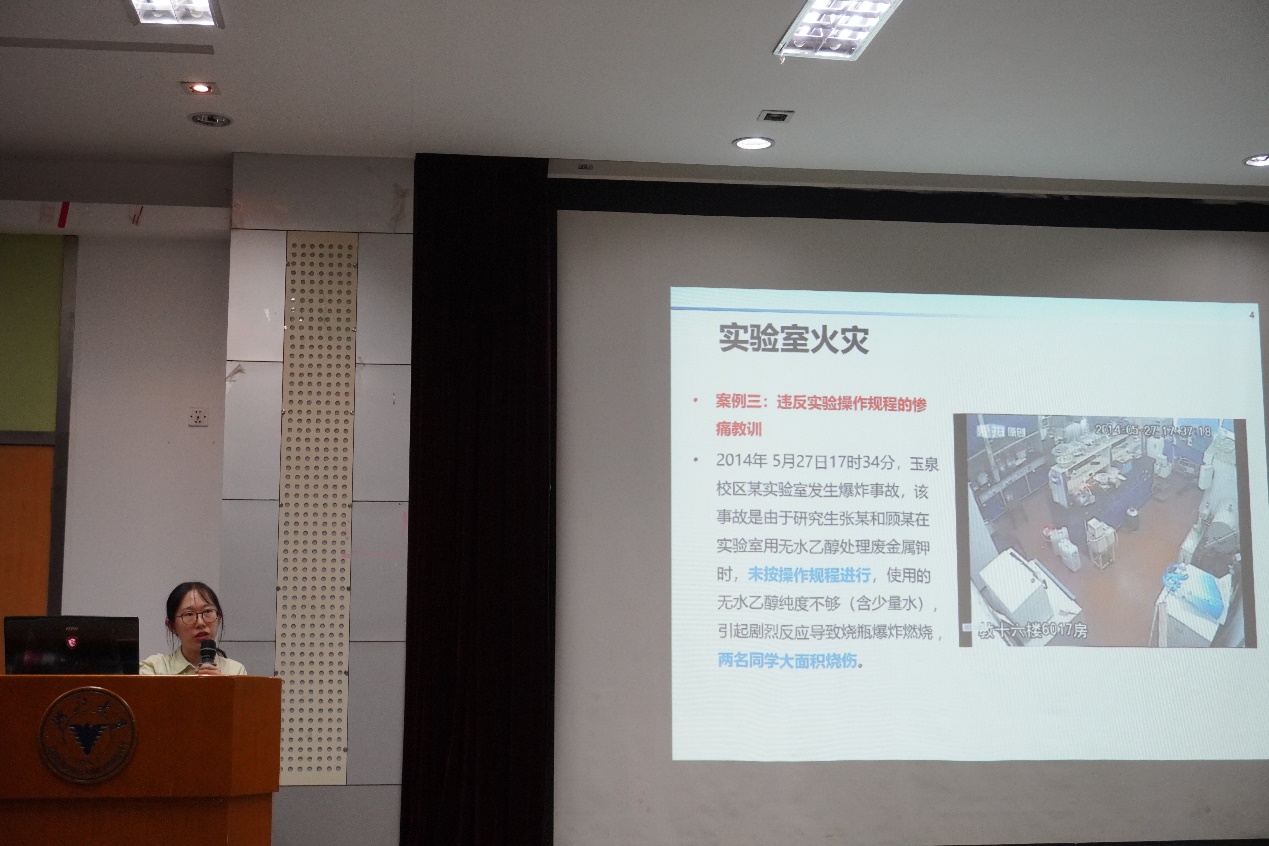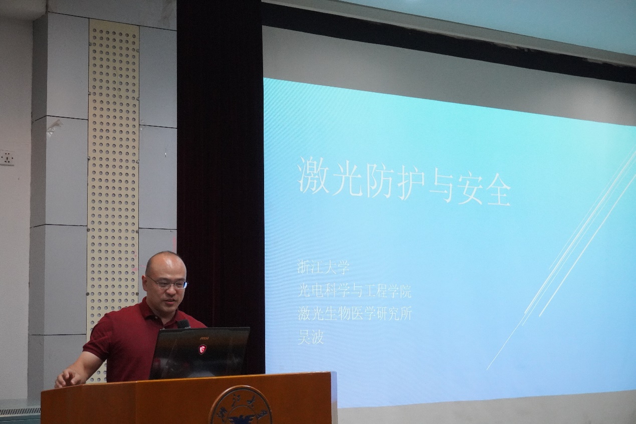 激光生物医学研究所的吴波老师做激光安全与防护讲座,提醒同学们时刻规范实验操作,注意实验安全。光电工程研究所的韩于冰老师做化学品安全讲座,提醒大家注意化学品的使用方法,以及废弃物处理方法,防范火灾发生。