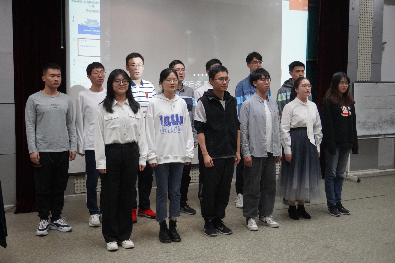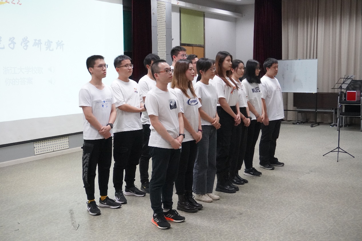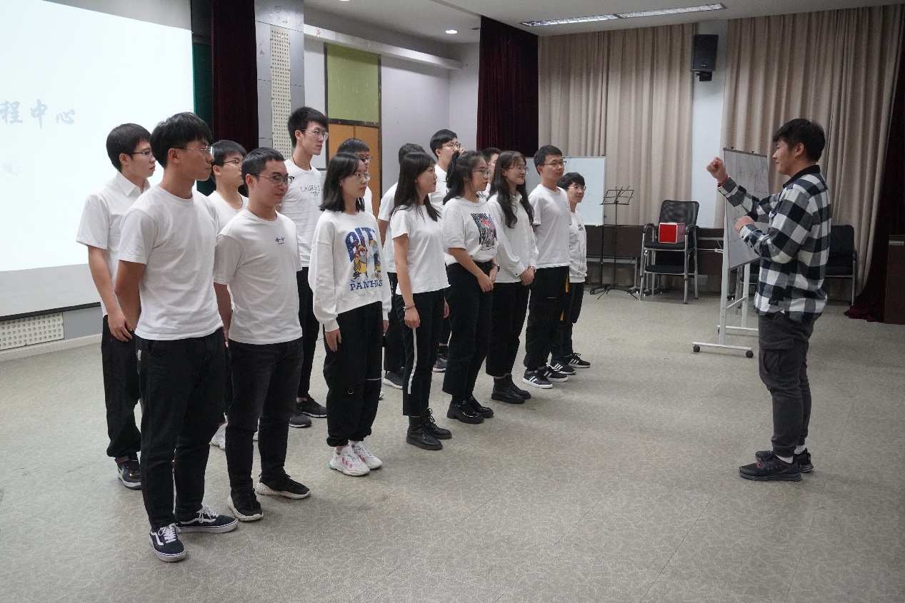 本次歌唱比赛的主持人为研究生邹鸿博与顾佳美。在一段开场白后,他们为我们介绍了比赛的要求和评分细则:每个研究所队伍除演唱校歌外,还要自选一首曲目进行演唱;从队伍的精神面貌、演唱技艺、服装、特色展示四个方面进行评分。