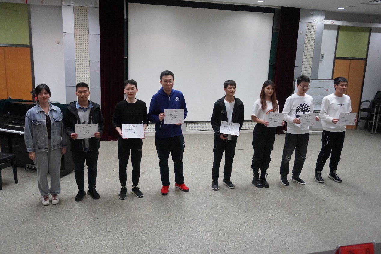 演唱环节完毕后,查蒙老师对节目表演情况进行点评,对于同学们进行鼓励并说明了训练台上仪态的重要性。统计分数完成后,为各所颁发了奖项:光学惯性技术工程中心凭借优秀的合唱水平和钢琴演奏荣获一等奖;光电工程研究所和微纳光子学研究所获得二等奖;其余各所并列三等奖。至此,光电学院第三届研究生合唱比赛圆满结束。
