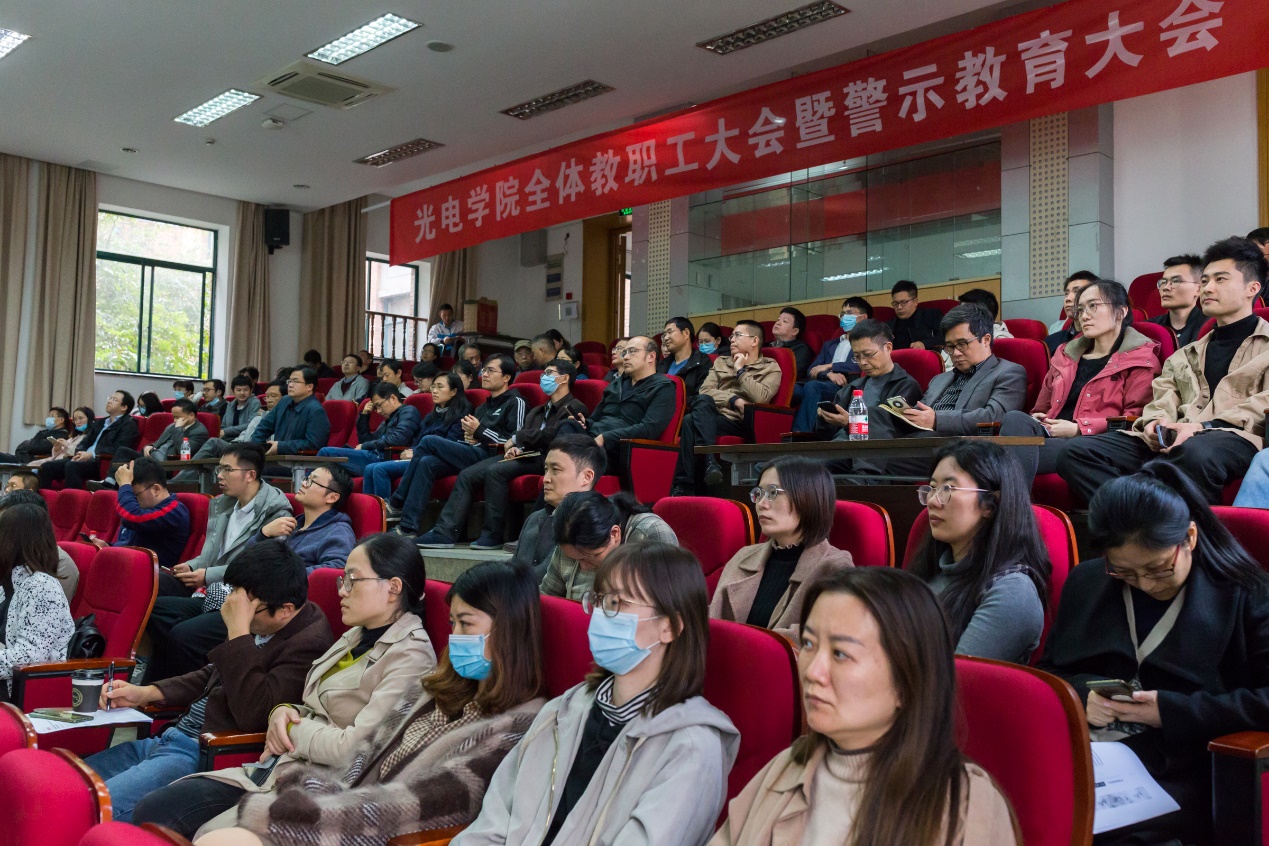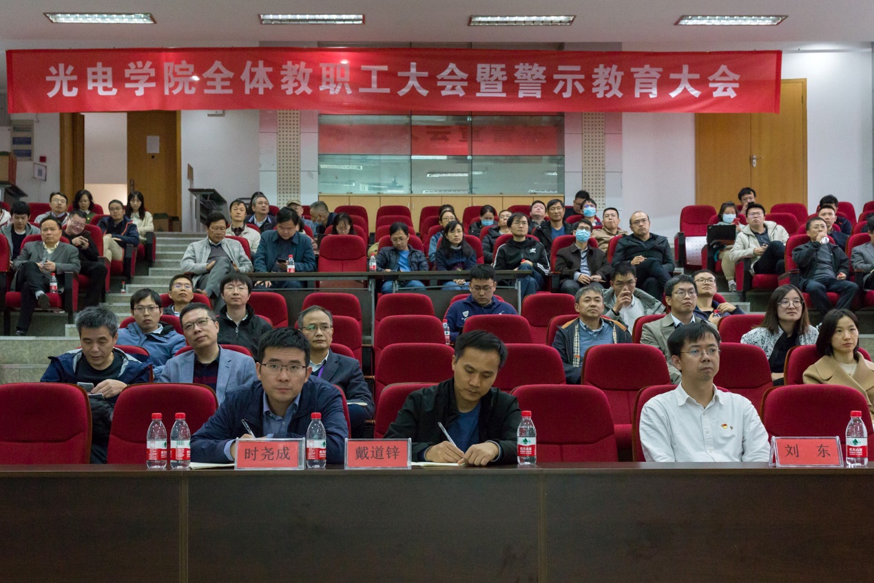 11月19日,浙江大学光电学院在玉泉校区教三301召开全体教职工大会暨警示教育大会,光电学院新一届领导班子成员及全体教职工100余人参加会议。会议由党委书记毕建权主持。