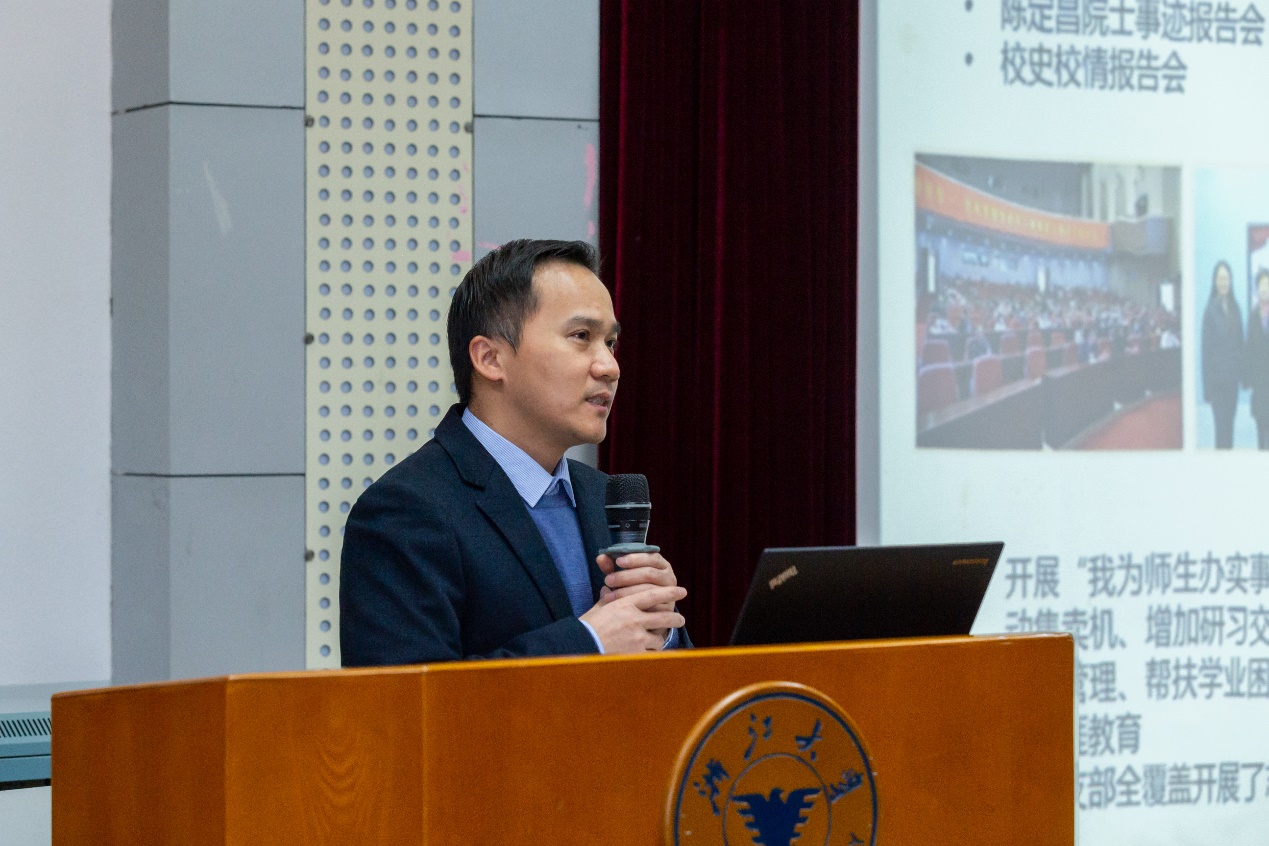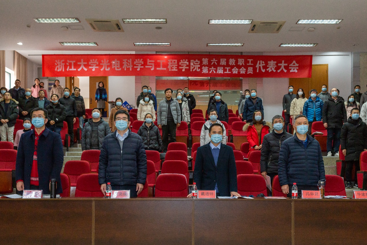在庄严的国歌声中,大会正式拉开序幕,光电学院院长戴道锌作2021年度学院工作报告。他指出,过去一年,在喜迎建党百年华诞、抓好“十四五”开局建设中,学院不断强化党建引领,构建思政教育新格局;完善内部治理,提升学院管理服务水平;坚持以人为本,推动拔尖创新人才培养;注重引育并举,诚聚学术大师和青年学者;面向重大需求,科研创新取得新突破;加强对外交流,国际合作深入发展;拓展发展空间,社会服务成效显著;注重文化传承,营造积极向上的学院氛围;落实意识形态责任制,维护校园安全稳定。下一阶段,要纲举目张抓好学院工作,以70周年院庆活动为契机,加快推动各领域提质增效,勠力同心、群策群力,努力开创新一轮“双一流”建设新气象,推动学院各项事业取得新的进步。