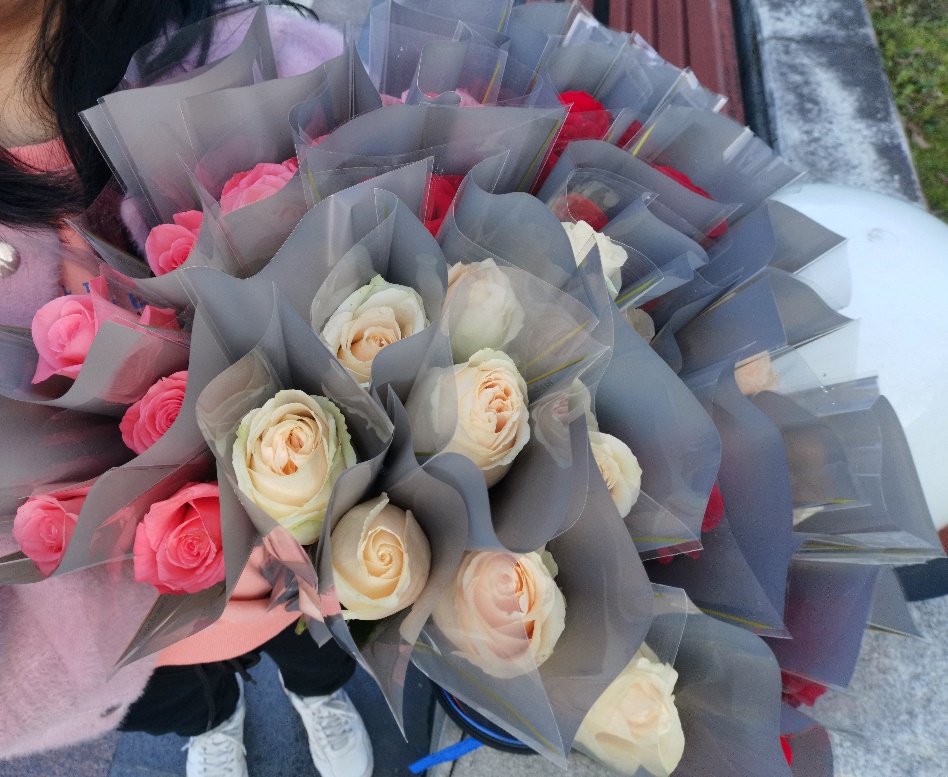 代表着爱与浪漫的玫瑰送到了每个参加活动的女生手中,祝愿她们收到最真挚的祝福。
