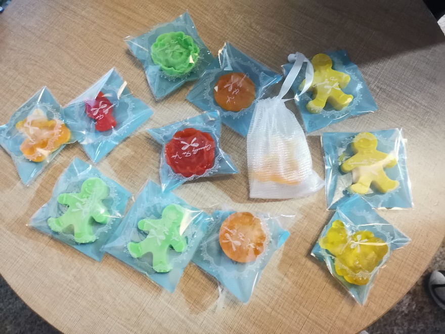 手工皂的制作也吸引了许多同学,大家依照自己的喜好添加颜色与香料,倒进模具中,就可以获得专属肥皂。现场的同学们做出了各式各样的肥皂,有琥珀色盛放的“花朵”,也有半透明的“小熊软糖”,还有可爱的“饼干人”,不仅可以自己留作纪念,还可以送给好朋友。