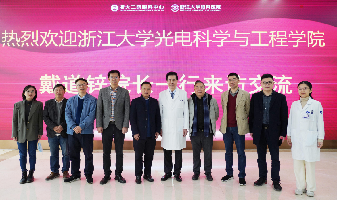 2022年3月11日,学院院长戴道锌一行8人赴浙江大学眼科医院(浙二眼科中心)进行考察,双方就进一步深化医工交叉合作展开深入交流。浙江大学眼科医院院长姚克、眼科各亚专科、重点实验室负责人,光电学院副院长刘东等参加了考察交流。