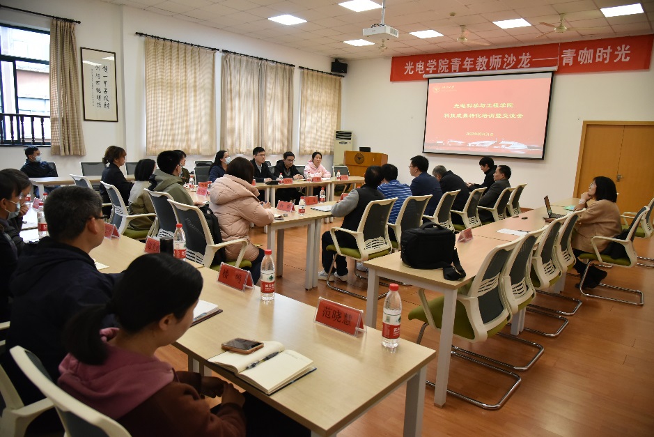 2022年3月31日,光电学院“青咖时光”第十七期——科技成果转化培训暨交流会在教三440会议室举办。会议邀请了浙江大学工业技术研究院副院长童哲铭一行7人解读成果转化相关政策并指导学院工作。光电学院副院长刘东出席并主持会议,各研究所(中心)分管科研副所长、青年教师20余人参会。